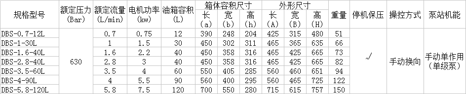 DBS选型参数表: