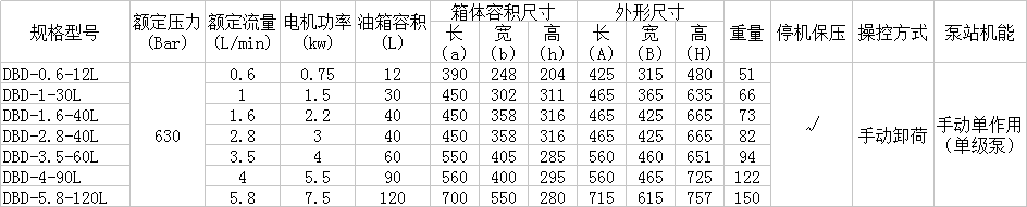 DBD选型参数表: